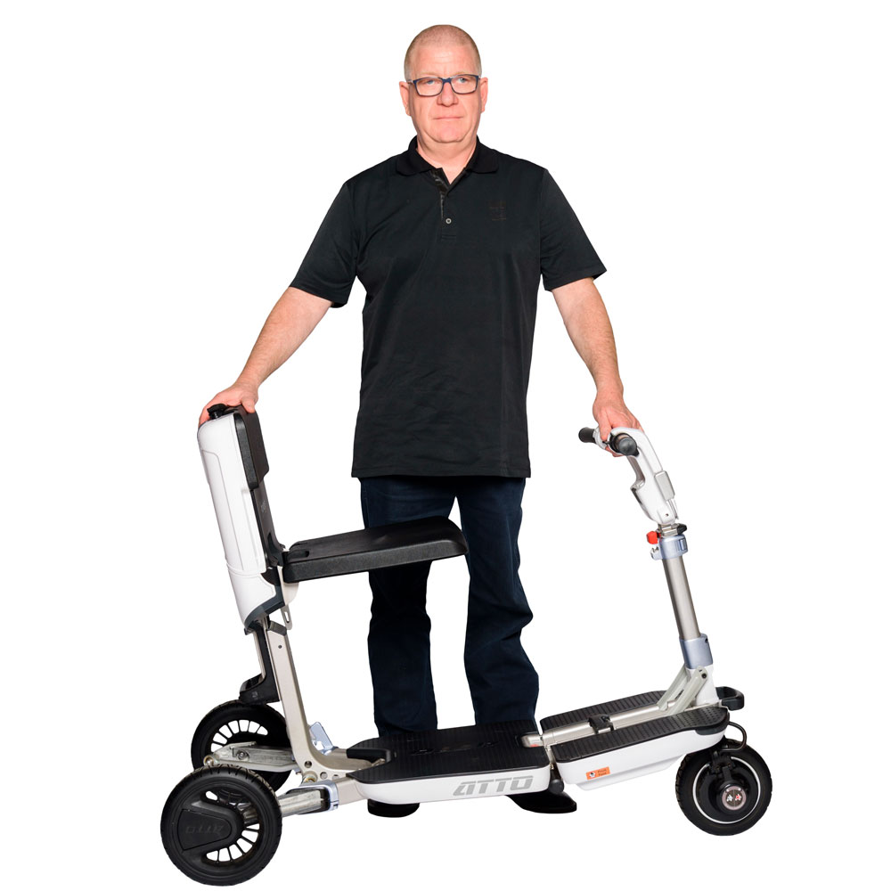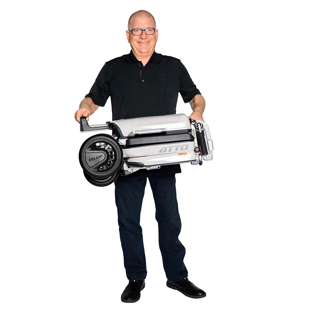 Der ATTO ist in wenigen Sekunden und mit wenigen einfachen Handgriffen aufgeklappt und fahrbereit. In wenigen Sekunden kann der ATTO zusammengeklappt, transportiert oder platzsparend verstaut werden.