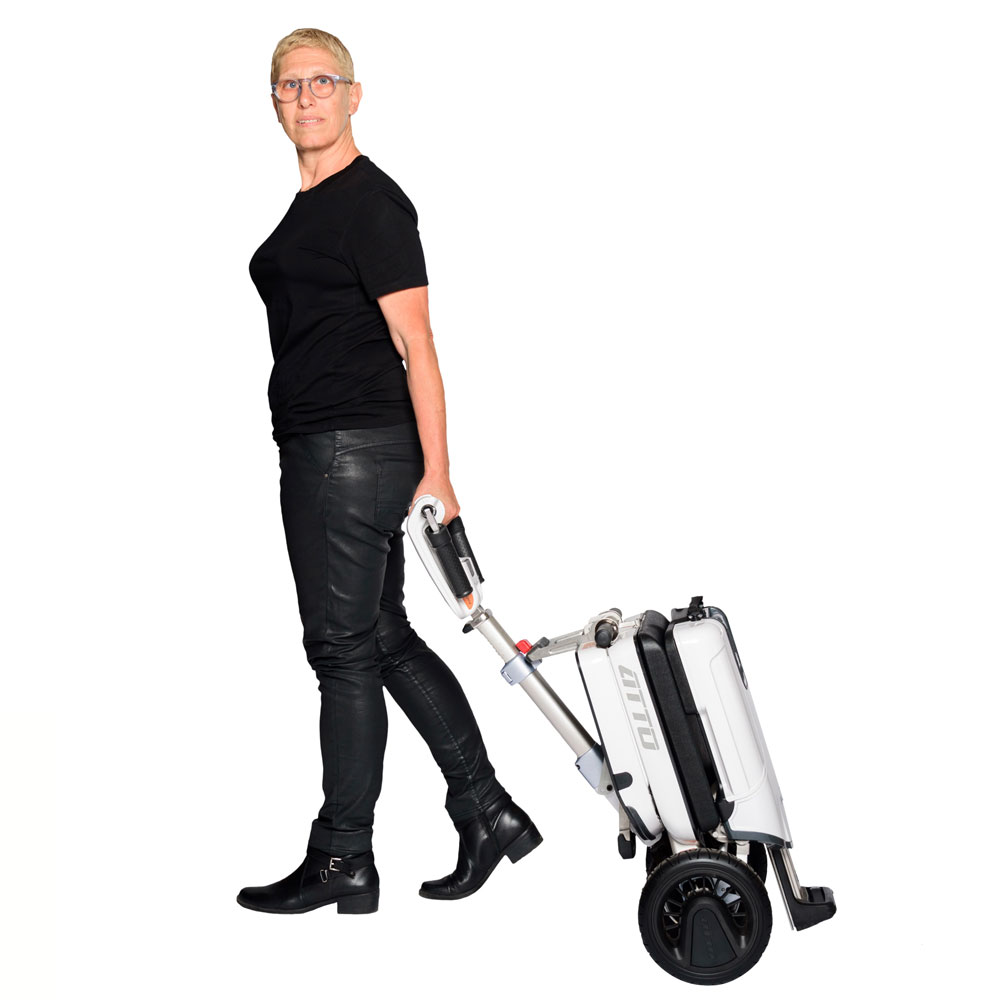 Im Trolley-Modus ziehen Sie ATTO einfach wie einen kleinen Koffer auf Rollen hinter sich her. So bleibt ATTO Ihr ständiger Begleiter.